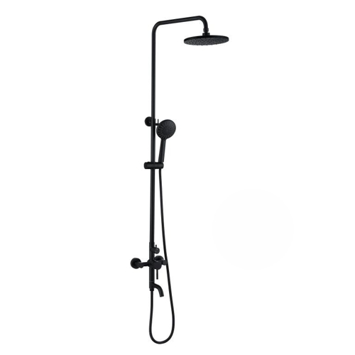 Колонна для душа "LIDZ" Aria (колір чорний мат) Арт.(Black)-06L-BES (труба+змішувач ванна+верхня лійка+шланг з лійкою)