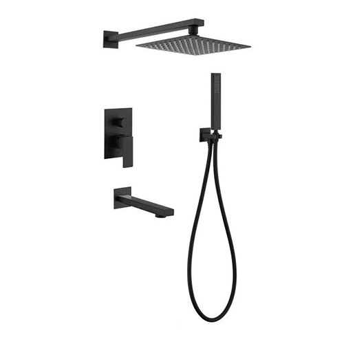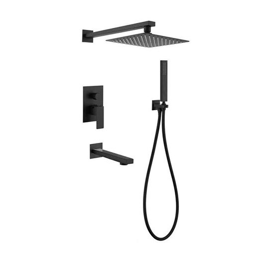 Колонна для душа "MIXXUS" (ЧОРНИЙ МАТ) прихований монтаж (змішувач +вилив +верхня лійка +шланг з лійкою) Арт.KUB-009 INNER BLACK