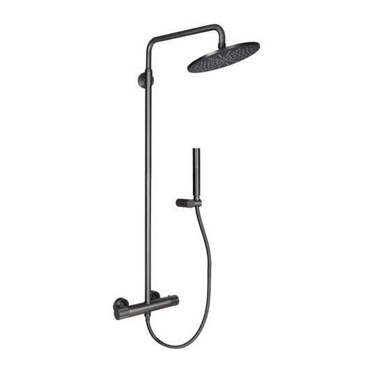 Колонна для душа "Q-TAP" Brno (колір, чорний космос) термостатична Арт.5769103ONK (труба+термостатичний змішувач+верхня лійка+шланг з лійкою)