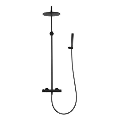 Колонна для душа "Q-TAP" Brno (колір, матовий чорний) термостатична Арт.5769103ONB (труба+термостатичний змішувач+верхня лійка+шланг з лійкою)