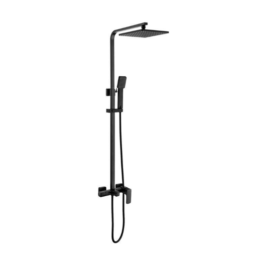 Колонна для душа "Q-TAP" Capricorn (колір, матовий чорний) Арт.53103KNB (труба+змішувач ванна+верхня лійка+шланг з лійкою)