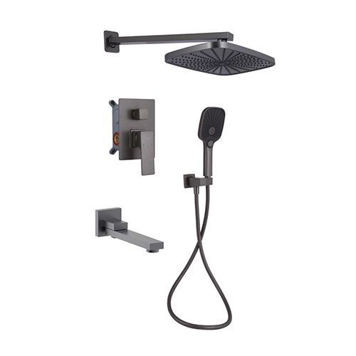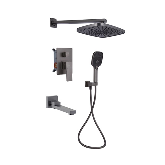 Колонна для душа "Q-TAP" Gemini (колір графіт металік) (прихований монтаж) Арт.QTGEM114GMB45704 (змішувач+вилив+верхня лійка+шланг з лійкою)
