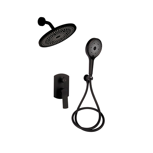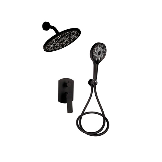 Колонна для душа "Q-TAP" Slavonice (колір чорний матовий) (прихований монтаж) Арт.QTSLA113BLM45900 (змішувач+верхня лійка+шланг з лійкою)