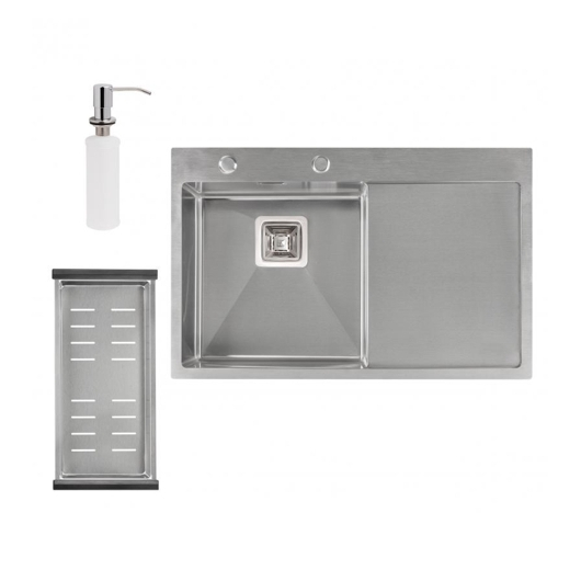 Мийка нержавіюча інтегрована "Q-tap" прямокутна з площадкою + сушарка + дозатор для миючого засобу (чаша справа) Арт.DK7850R