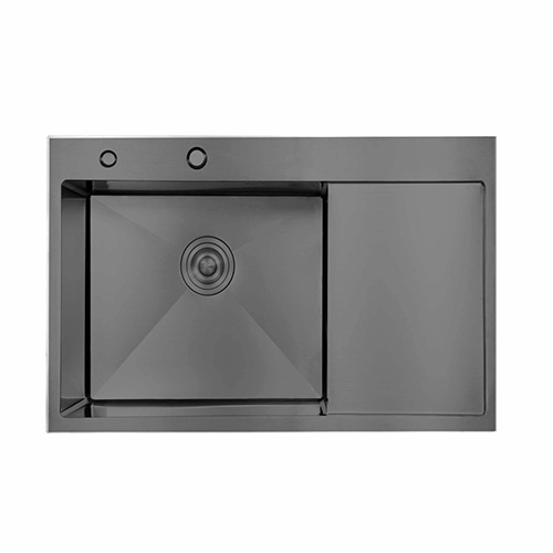 Мийка нержавіюча інтегрована "LIDZ" Brush прямокутна з площадкою Арт.H6350BR PVD Black (LDH6350BRPVD45590) ЛІВА