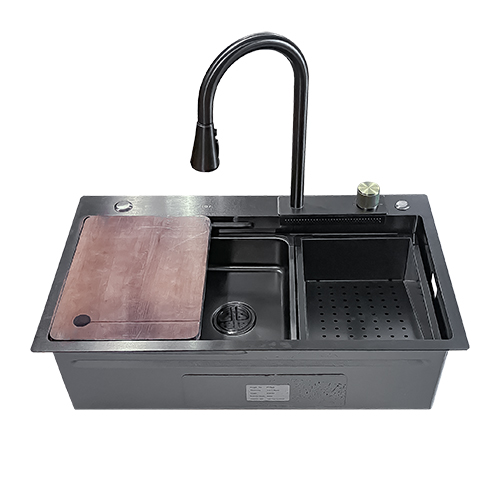 Мийка нержавіюча інтегрована "VIOR" BLACK прямокутна (змішувач висув. вилив/змішувач водопад/кошик/ємкість/дощечка) Арт.FY7545