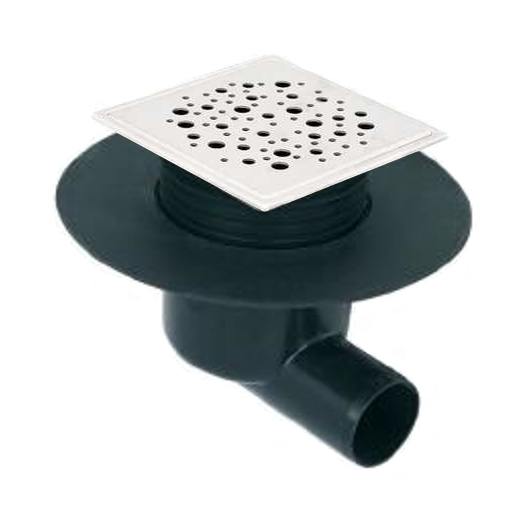 Головна/Каталог/Сантехніка/Трапи для ванної/"CAPRICORN" Трап у ванну РЕГУЛЮЮЧИЙ ф50 нержавійка (12х12см.) УГЛОВИЙ SPOT (з платформою під гідроізоляцію) Арт.9-2624-050-47-01-10