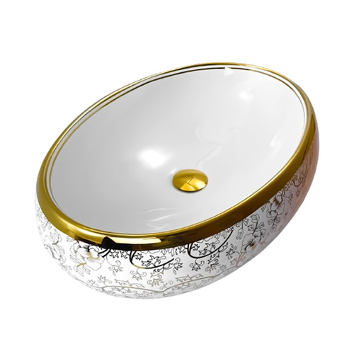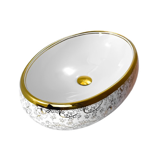Раковина накладна овальна "LUENTE" TOLEDO 600*400*155 Арт.(WHITE-bloom) G441