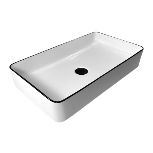 Раковина накладна прямокутна "LUENTE" AVIO 610*340*110 Арт.(WHITE+BLACK LINE) A107B