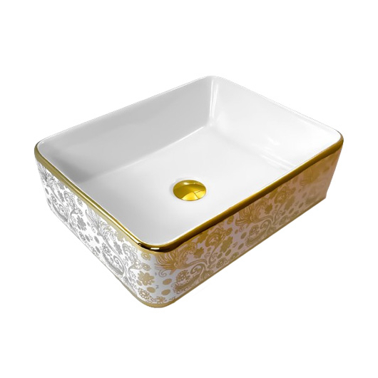 Раковина накладна прямокутна "LUENTE" MIOLA 480*370*130 Арт.(WHITE-bloom) G424