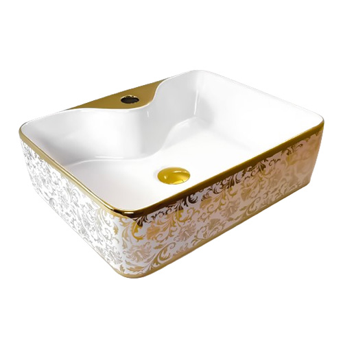 Раковина накладна прямокутна "LUENTE" PONTO 480*370*130 Арт.(WHITE-bloom) G378