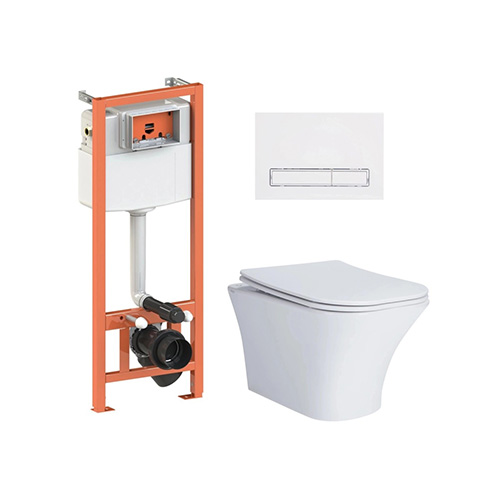 Комплект "Q-TAP" PRESTO (унітаз підвісний QT24332615EW + інсталяція QT0133M425 + квадратна клавіша White QT0111M08V1384W)