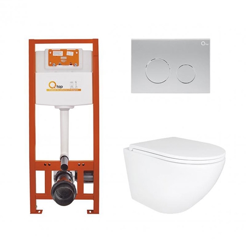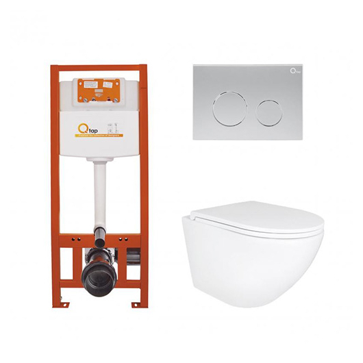 Комплект "Q-TAP" ROBIN (унітаз підвісний QT1333046EUQW + інсталяція QT0133M425 + кругла клавіша SATIN QT0111M11111SAT)