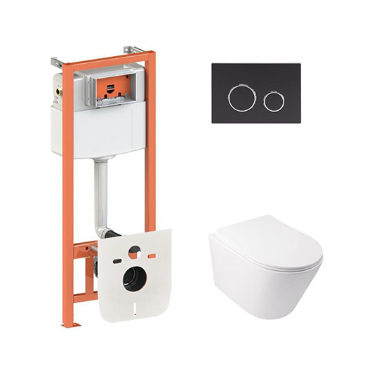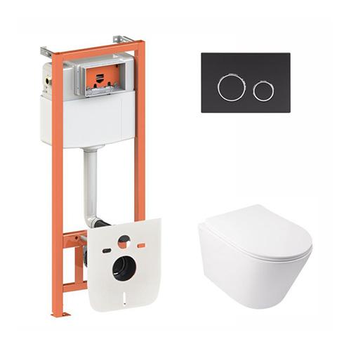 Комплект "Q-TAP" SWAN (унітаз підвісний QT16335178W + інсталяція QT0133M425 + кругла клавіша BLACK MAT QT0111M11V1146MB)