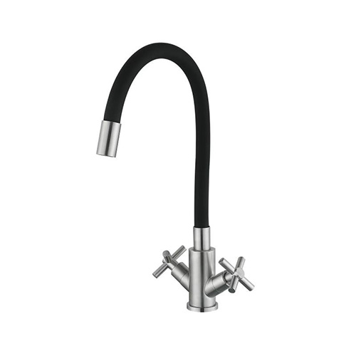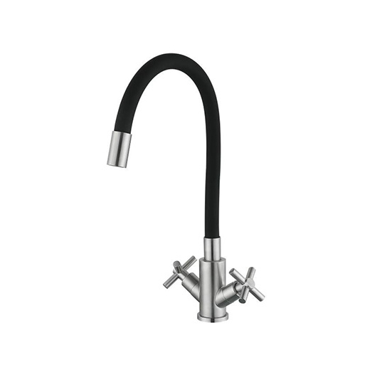 Змішувач (1/2) "LIDZ" Wind (нержавійка) кухня гнучкий "ПРУЖИНА" ручка хрест (гусак чорний) НА ГАЙЦІ Арт.13R-BFS