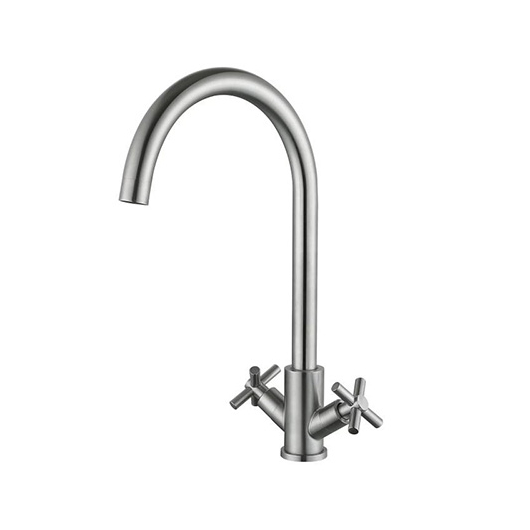Змішувач (1/2) "LIDZ" Wind (нержавійка) кухня вигнута ручка хрест НА ГАЙЦІ Арт.13U-SFS