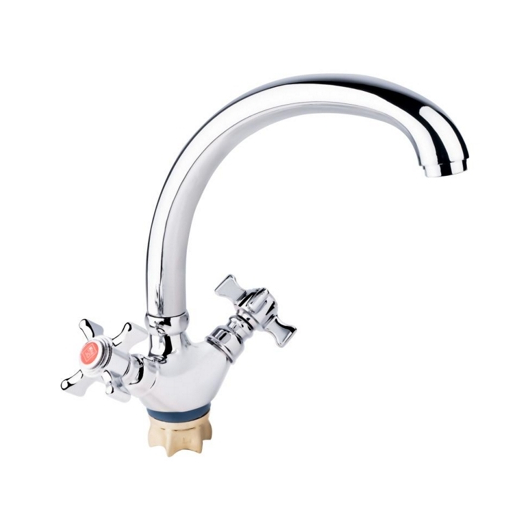 Змішувач (1/2) "LIDZ" кухня ЛИТИЙ ручка хрест НА ГАЙЦІ Арт.(CRM)-75 22 271F-3 (31 22 271 03)