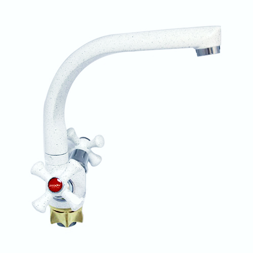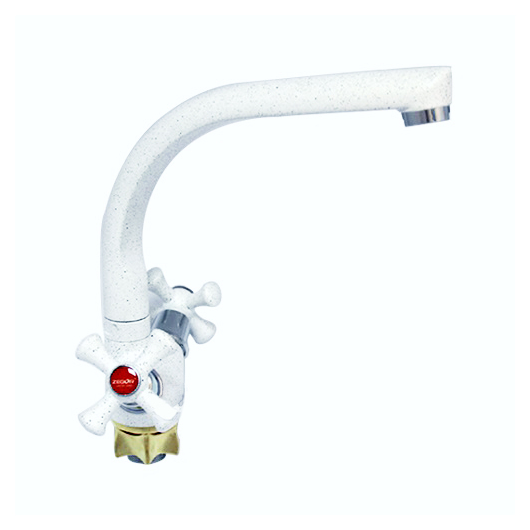 Змішувач (1/2) ZEGOR (колір білий) кухня ЛИТИЙ г-образний ручка хрест НА ГАЙЦІ Арт.TLD-A827-W