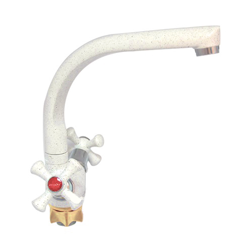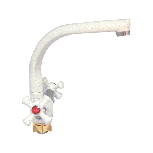 Змішувач (1/2) ZEGOR ( ПШЕНИЧНИЙ) кухня ЛИТИЙ г-образний ручка хрест НА ГАЙЦІ Арт.DTZ4-D827-S (TLD-A827-S)