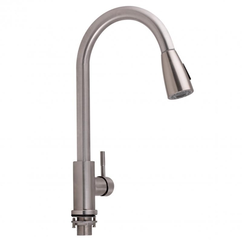 Змішувач (35) "LIDZ" (нержавійка) кухня вигнута НА ГАЙЦІ витяжний гусак Арт.015FL (LDARI015FLNKS34945) (12 32 015FL-8)