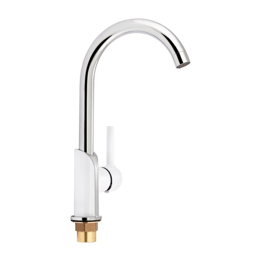 Змішувач (35) "Q-TAP" GRAND ( БІЛИИЙ-ХРОМ) кухня вигнута НА ГАЙЦІ Арт.WCR 007F