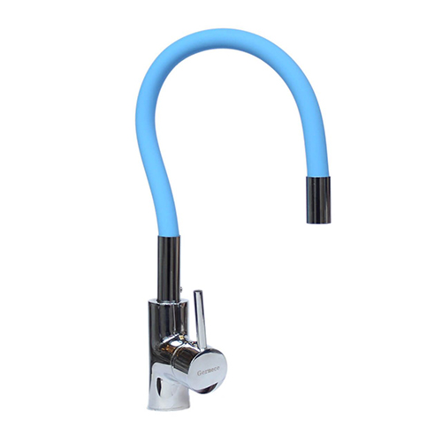 Змішувач (40) "SOLONE" (нержавійка) кухня гнучкий "ПРУЖИНА" гусак голубий Арт.EZA4-F090BU