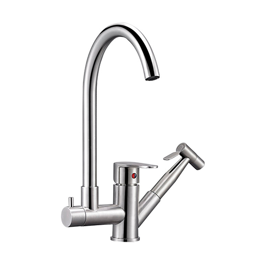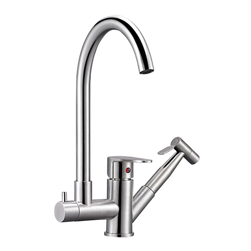 Змішувач (40) "SOLONE" (нержавійка) кухня ВИГНУТА (на гайці) + витяжна лійка Арт.JAT18-A094