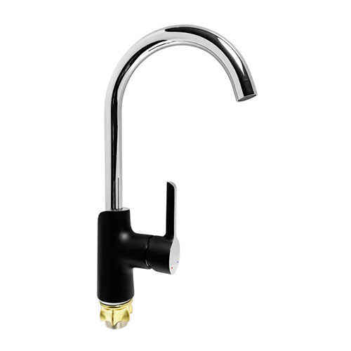 Змішувач (40) ZEGOR (колір чорний+хром) кухня ВИГНУТА НА ГАЙЦІ Арт.EZO4-A036YB