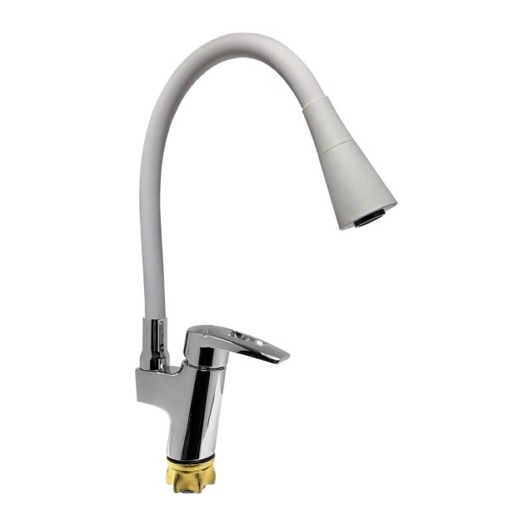 Змішувач (40) ZEGOR кухня гнучкий "ПРУЖИНА" НА ГАЙЦІ гусак сірий Арт.SWF4-F113GY