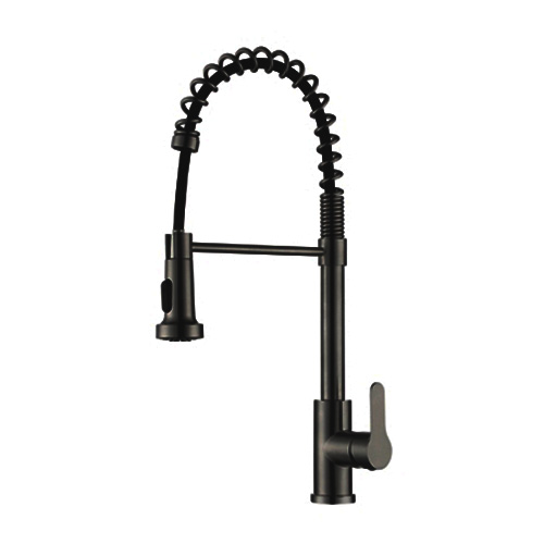 Змішувач (40) ZEGOR (колір чорний) кухня вигнута НА ГАЙЦІ витяжний гусак Арт.SAP4-G097KB