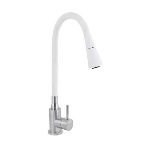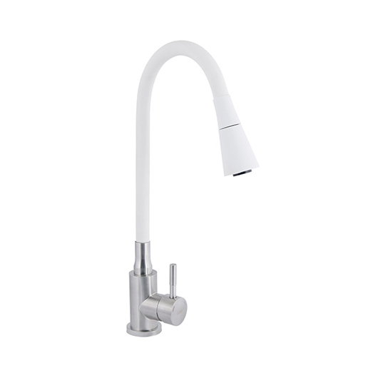 Змішувач (35) "LIDZ" Aria (нержавійка) Кухня гнучкий "ПРУЖИНА" НА ГАЙЦІ білий гусак Арт.015 F31 (LDARI015F31WNK36981)