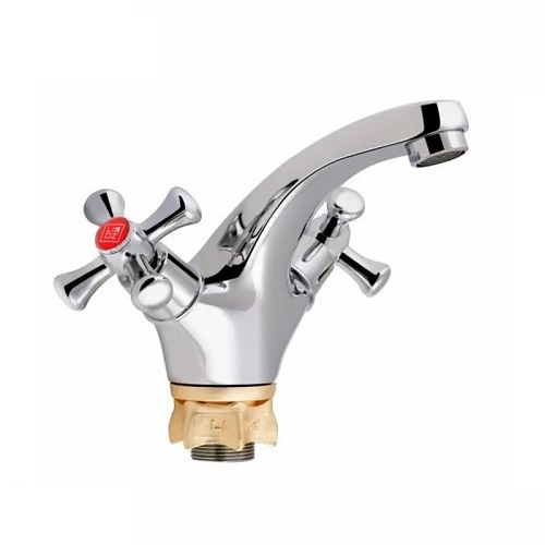 Змішувач (1/2) "LIDZ" умивальник НЕПОВОРОТКИЙ ручка хрест НА ГАЙЦІ Арт.(CRM)-75 21 161F