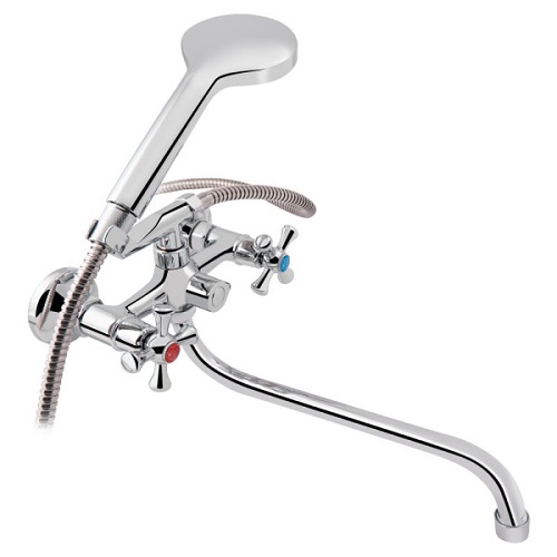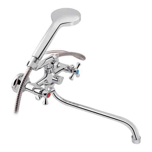 Змішувач (1/2) "LIDZ" ванна довгий простий ручка хрест Арт.(CRM)-75 21 140S (30 21 140S)