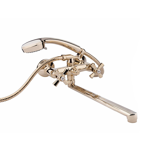 Змішувач (1/2) "Q-TAP" LIBERTY (колір золото) ванна довгий ЛИТИЙ ручка хрест Арт.ORO 140