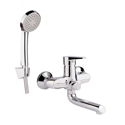 Змішувач (35) "GF Italy" (01) (колір хром-сатин) ванна короткий поворотний ЛИТ.гус. (ПЕРЕКЛ. НА КОРП.) Арт.(NKS)S-01-005BN