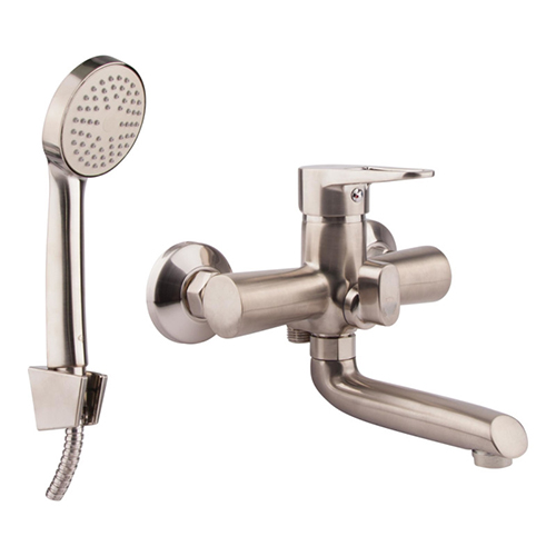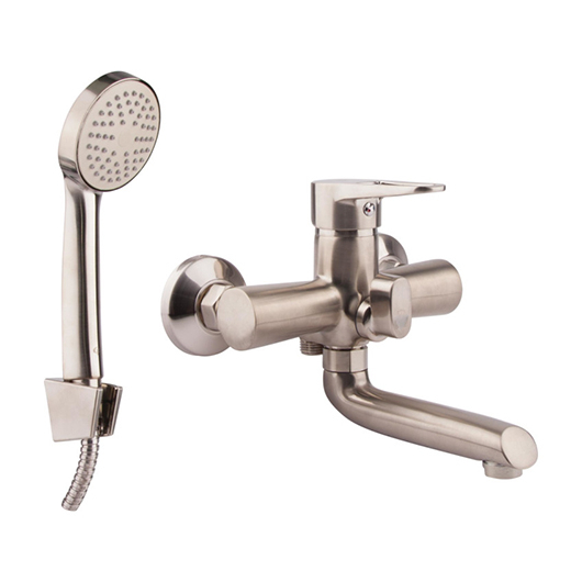 Змішувач (35) "GF Italy" (02) (колір хром-сатин) ванна короткий поворотний ЛИТ.гус. (ПЕРЕКЛ. НА КОРП.) Арт.(NKS)S-02-005BN