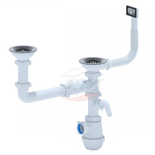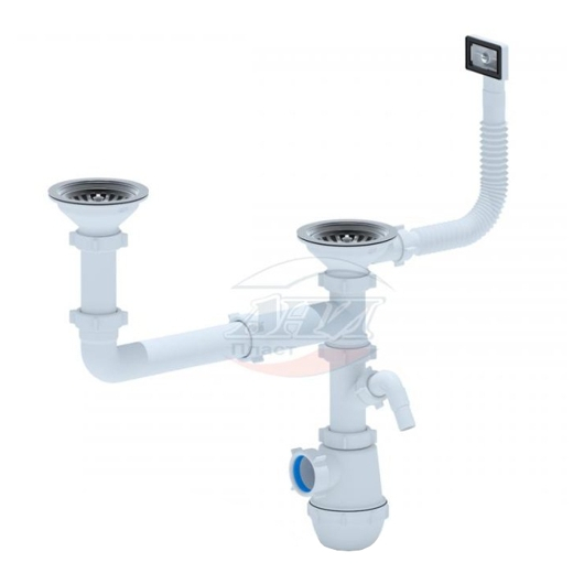"АНІ-ПЛАСТ" Сифон для мийки ПОДВІЙНИЙ (велике горло, перелив квадратний +вих. для СМА) (Арт.A7700SSP) 6/4