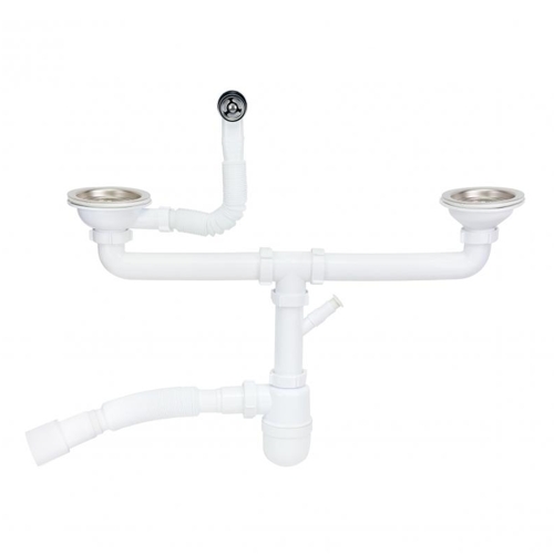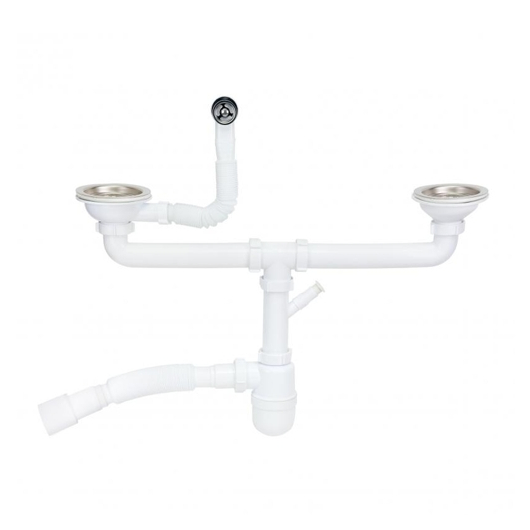 "LIDZ" Сифон для мийки подвійний (випуск 115мм./круглий перелив/дод. відведення/гофра 40/50мм.) LK07 Арт.(WHI)-60 08 E001 02