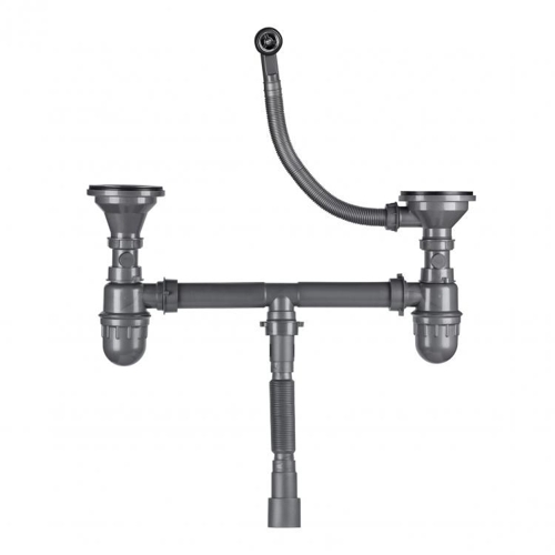 Сифон для врізної мийки ПОДВІЙНИЙ 6/4 з відстійн. і переливом (велике горло) (перелив круглий)