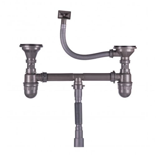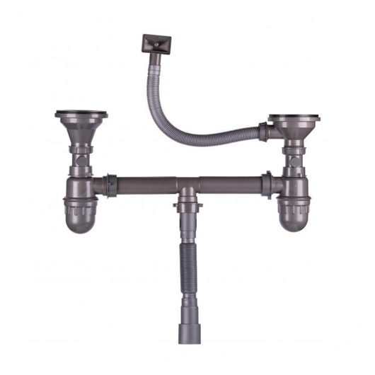Сифон для врізної мийки ПОДВІЙНИЙ 6/4 з відстійн. і переливом (велике горло) (перелив квадратний)