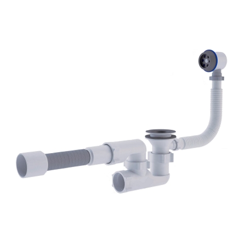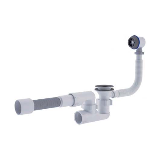 "АНІ-ПЛАСТ" Сифон ванна трубка перелива плоска+ревізія (Арт.Е256) гофра 6/4---50