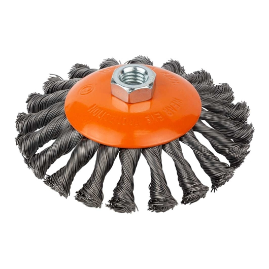 Щітка дротяна конусоподібна "GRAD" d 125мм. М14х2мм. (сталевий дріт 0,5мм.КРУЧЕНИЙ) Арт.9040125