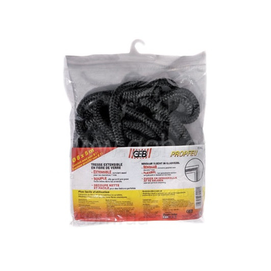 Термостійкий шнур "GEB" для герметизації дверей топок, печей, камінних топок та котлів 4/5/6х2,5м. Арт.832392 (821535)