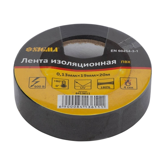 Ізолента ПВХ чорна "SIGMA" 0.13мм.х19мм.х20м. Арт.8413611