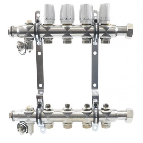 Колектор НЕРЖ. з кранами компл. "SD-FORTE" (верх+низ+кріпл.) 7 вих. Арт.SFE005