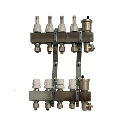 Колектор НЕРЖ. з витратомірами компл. "CAPRICORN" (верх+низ+кріплення+закінчення+євроконуса 1/2х16) 4 вих. Арт.9-3955-004-(BT)