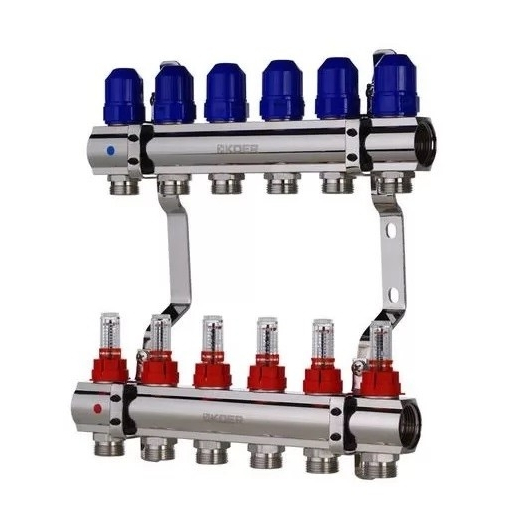 Колектор з витратомірами компл. "KOER" (верх+низ+кріпл.) 6 вих. Арт.KR.1110-06