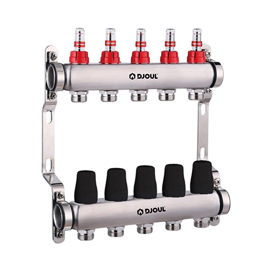 Колектор нержавійка з витратомірами комп. "DJOUL" (верх+низ+кріпл.) 8 вих. Арт.DJ260158SS