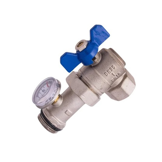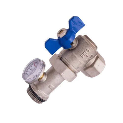 Кран+градусник для колектора 1" кутовий Арт.8511 2*40