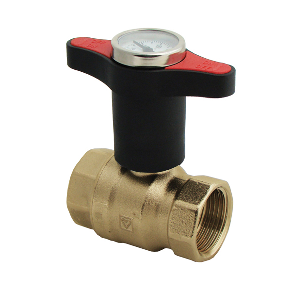 Кран+градусник для води "HERZ" 1" мм. прямий (червона ручка) Арт.1220163
